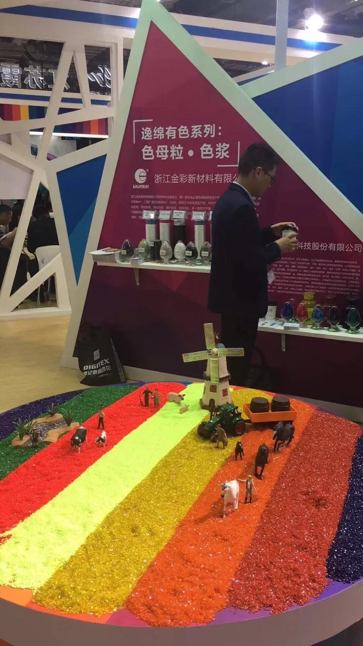 本次展會(huì)上,我們金彩展出的由各種色母粒組成的“風(fēng)車田野風(fēng)光”,引起了參會(huì)者的濃厚興趣,興致盎然者紛紛上前駐足觀看、拍照、用手親自感受母粒的完美質(zhì)感;