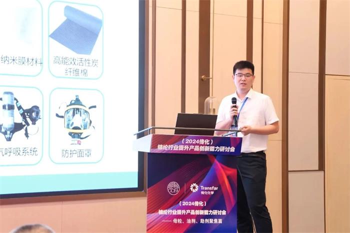 會上,來自行業協會、科研院所及錦綸產業鏈上下游的專家分別就新產品研發路徑、母粒油劑助劑的研發和應用等內容展開探討和分享。