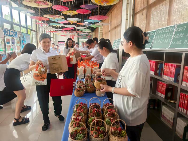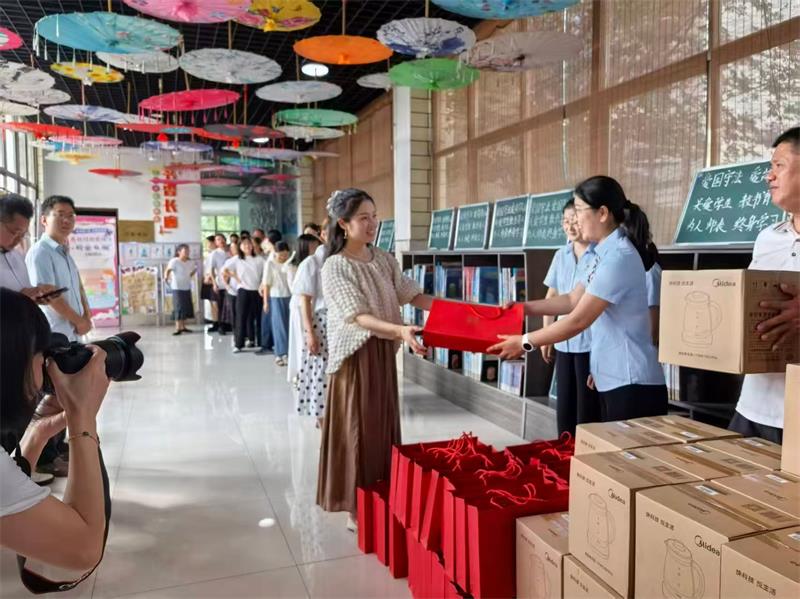 隨后,慰問小組與學校教師代表一同舉行了簡單而溫馨的禮物贈送儀式。每份禮物都承載著浙江金彩對教師群體的貼心關懷。當教師們接過禮物時,臉上洋溢著幸福的笑容。